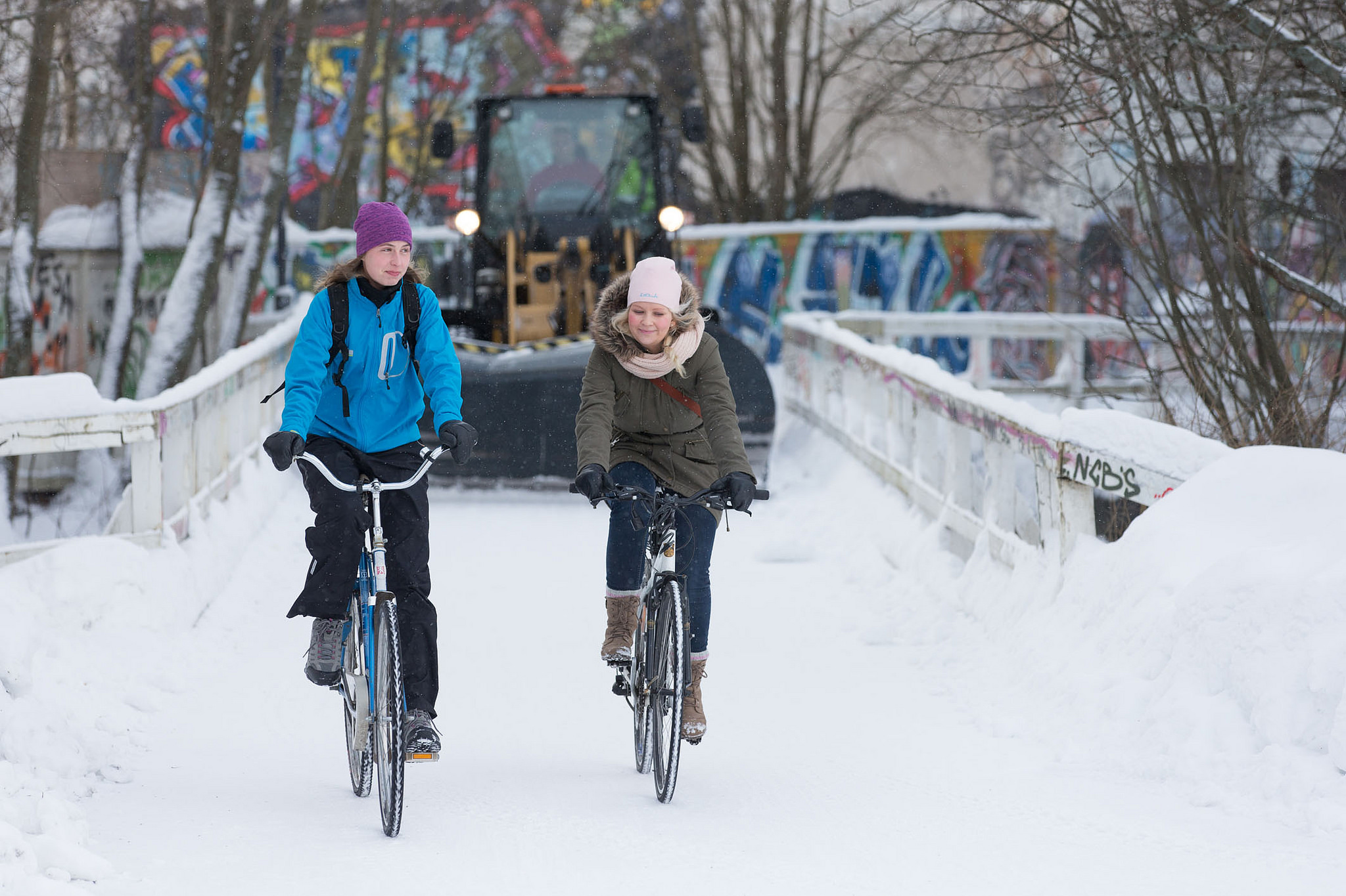 Cyclists in the snow in Oulu, Finland © Pekka Tahkola, Navico